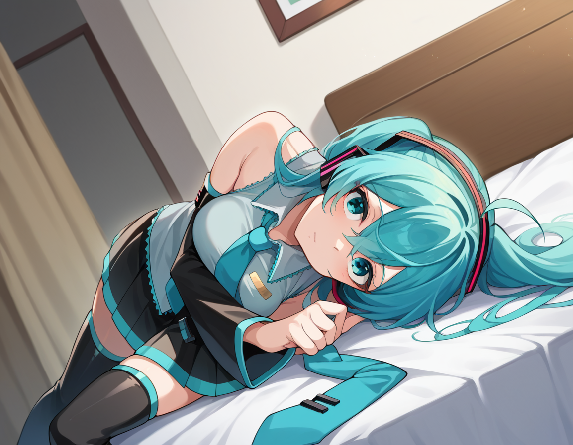 miku hatsune, ahoge, 水色の目, 水色の髪, 交差した前髪, 目の間の髪, 髪飾り, ヘッドホン, 長い髪, ツインテール,
