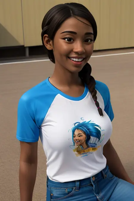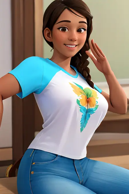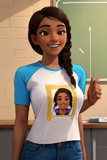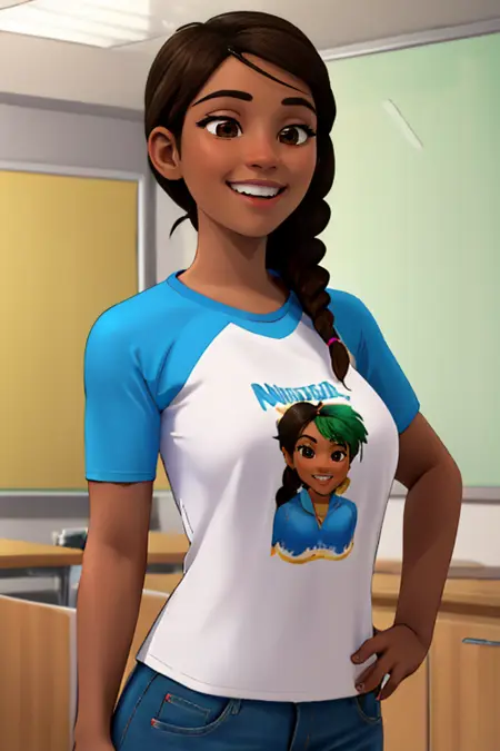 cocomelon_teacher, 1girl, long hair, breasts, brown hair, brown eyes, braid, dark skin, dark-skinned female, single braid,