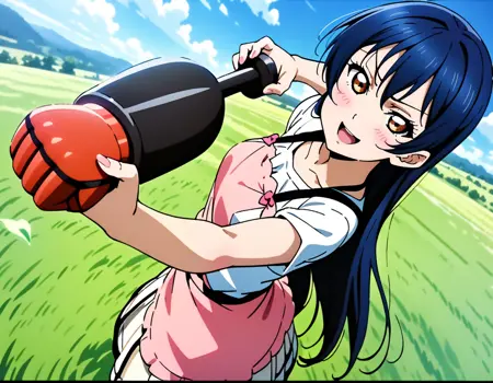 The LORA is holding weapon,clenched hand,incoming attack,arm cannon,fighting stance,looking at viewer,looking at upper body,dutch angle, and will pose for you.