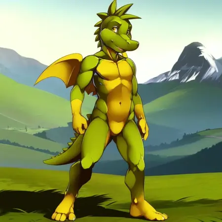 強化タグ:male,dragon,green skin,yellow wings,yellow belly,yellow hands,yellow feet