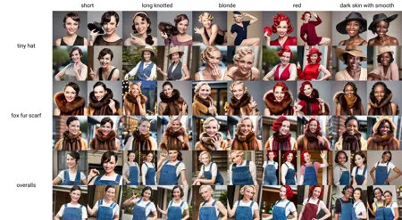 원하는 강도로 프롬프트에 "finger wave hair"를 입력하세요. 다양한 가중치에서 유연하게 작동합니다. 짧은 스타일부터 긴 스타일까지 다양한 종류를 생성할 수 있습니다. 생성 아이디어는 그리드를 참조하세요.