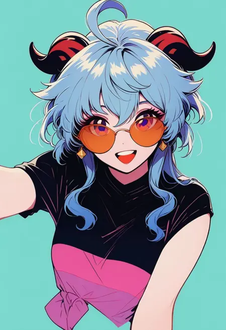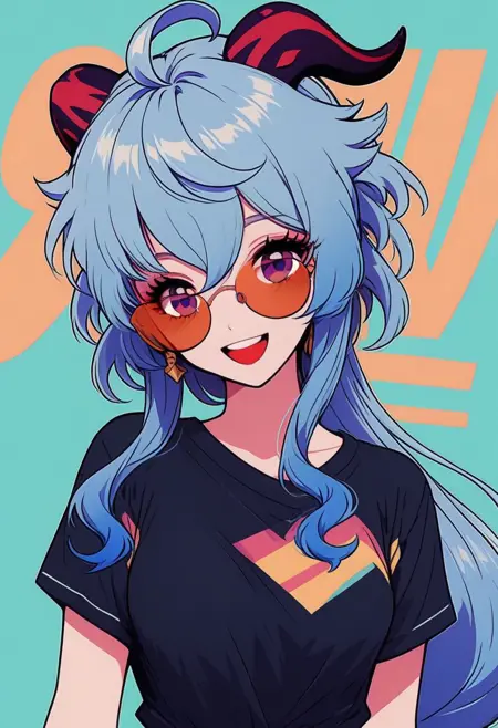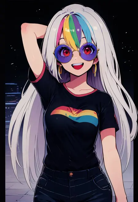 jewelry, white shirt, upper body, short sleeves, earrings, glasses, striped, hoop earrings, round eyewear, yellow-framed eyewear,