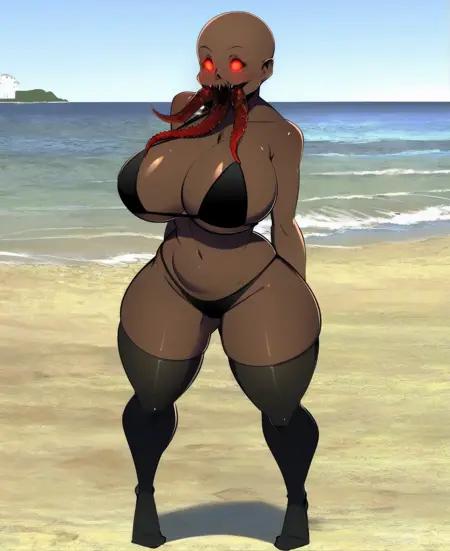 Reinforcement Tags: female,Cthulhu,bald,red eyes,empty eyes,brown skin,breasts**