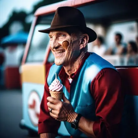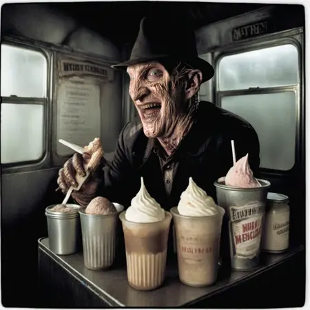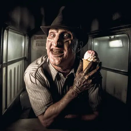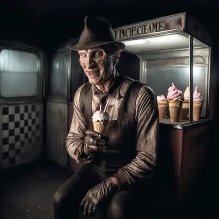 Freddy Krueger is a fictional character and the primary antagonist in the A Nightmare on Elm Street film series. He was created by Wes Craven and made his debut in Craven's A Nightmare on Elm Street (1984) as the malevolent spirit of a child killer who had been burned to death by his victims' parents after evading prison. Krueger goes on to murder his victims in their dreams, causing their deaths in the real world as well. In the dream world, he is a powerful force and seemingly invulnerable. However, whenever Freddy is pulled back into the real world, he has normal human vulnerabilities and can be destroyed. He is commonly identified by his burned, disfigured face, dirty red-and-green-striped sweater and brown fedora, and trademark metal-clawed, brown leather, right hand glove. This glove was the product of Krueger's own imagination, having welded the blades himself before using it to murder many of his victims, both in the real and dream worlds.