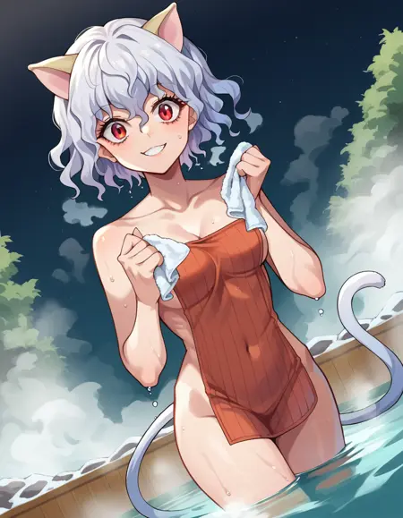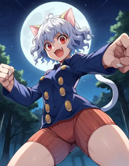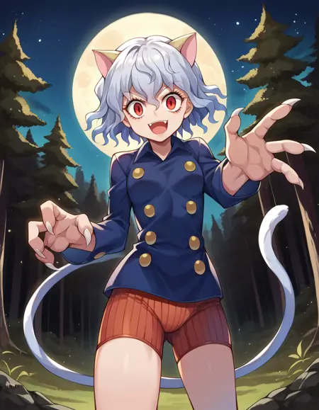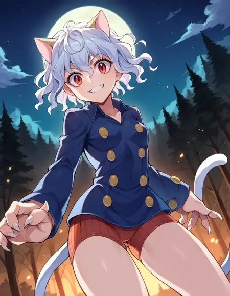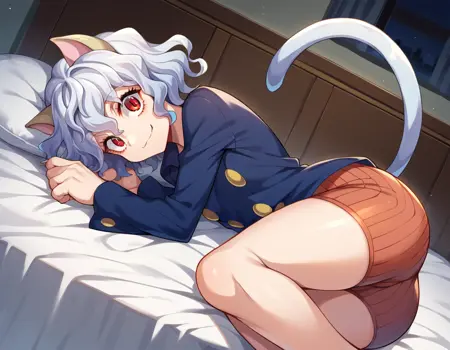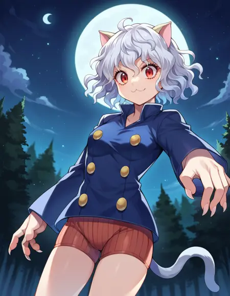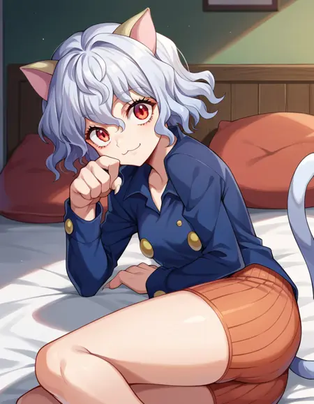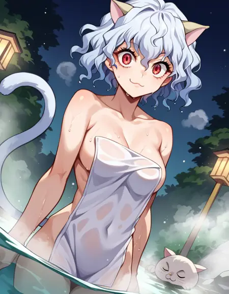 neferpitou, short hair, red eyes, animal ears, tail, white hair, cat ears, cat tail, curly hair,
