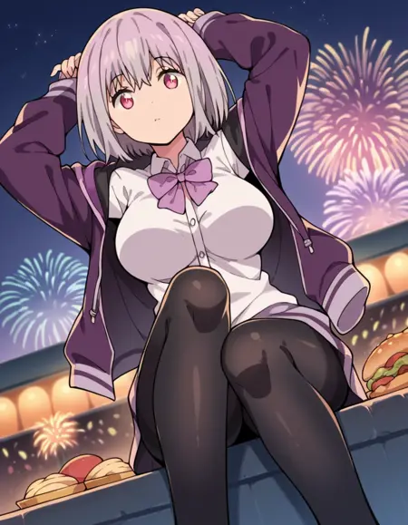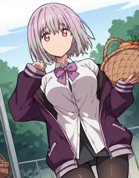 shinjou akane、薄紫色の髪、ピンクの目、短い髪
