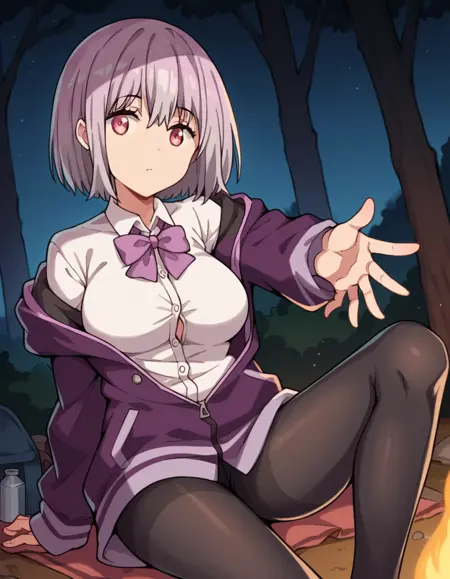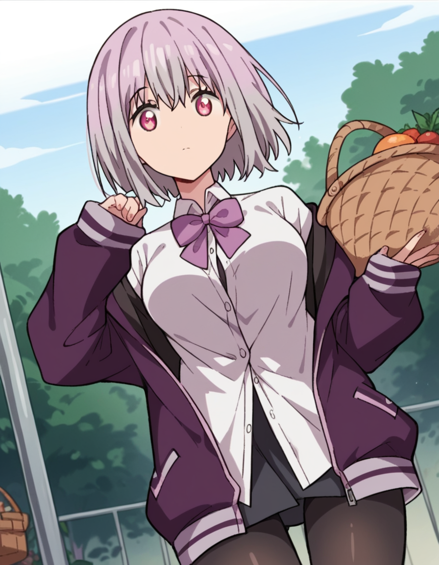 shinjou akane, light purple hair, pink eyes, short hair,