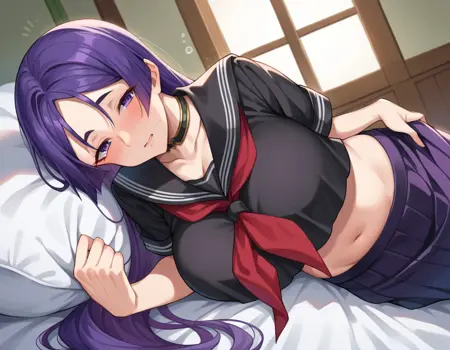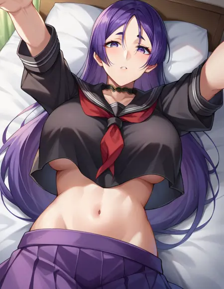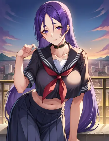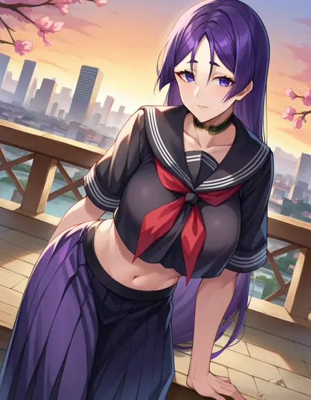 black sailor collar, black serafuku, black shirt, collarbone, crop top, crop top overhang, cropped shirt, long skirt, midriff, navel, neckerchief, pleated skirt, red neckerchief, sailor collar, school uniform, serafuku, shirt, skirt,