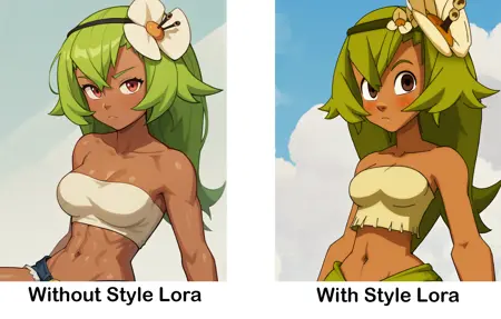 keep in mind, while I somehow won, this is not a perfect style in my eyes, tbh it's the first STYLE I have ever made, I just took what I thought would work, and went with it, as a result the Dataset has images that aren't very ideal, and generate subjects at a distance ... I have recognized the issues origin , and will be training a new, and improved version as well as individual characters from the series in time. this will take longer then my normal semi-daily LoRA's given that I want a 1:1 replication of the Anime Style, and Design which requires a lot more detailed training setup to make perfect.