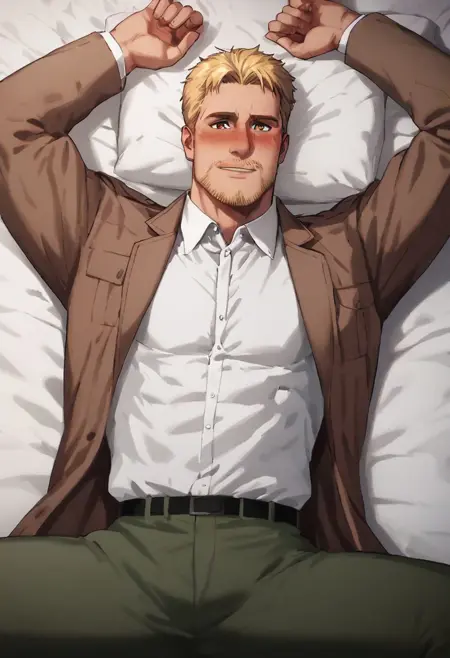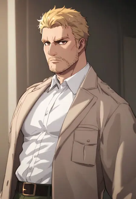 动画角色baramuscularhandsomemuscular maleshirtshingeki no kyojinattack on titanyaoianime characteryoung manmalemanshort hairuniformbeardsoldiercharacterscoatmilitary uniformtrench coatblondhunkreiner braunreinermale charactermuscular manstubblessanpakuthree-dimensional maneuver gearhazel eyesathletic bodymilitary coatomni-directional mobility gearvertical maneuvering equipmentshihakugan