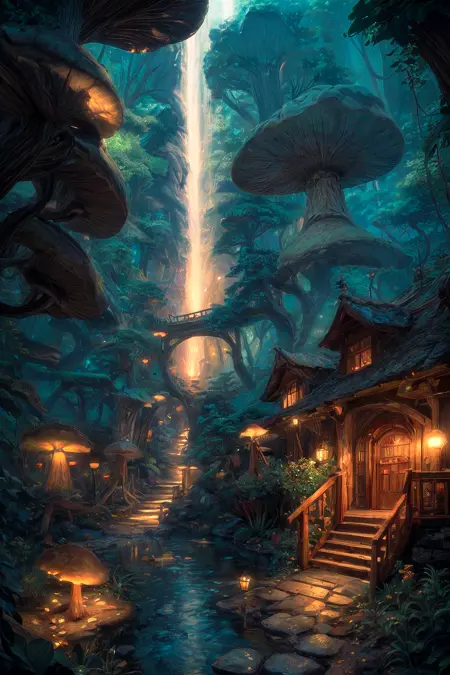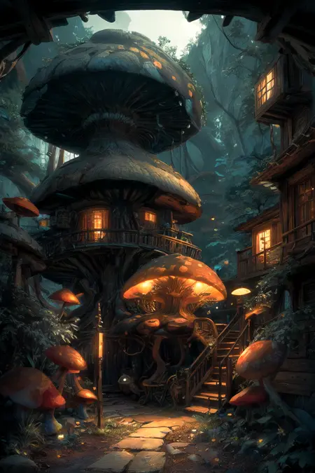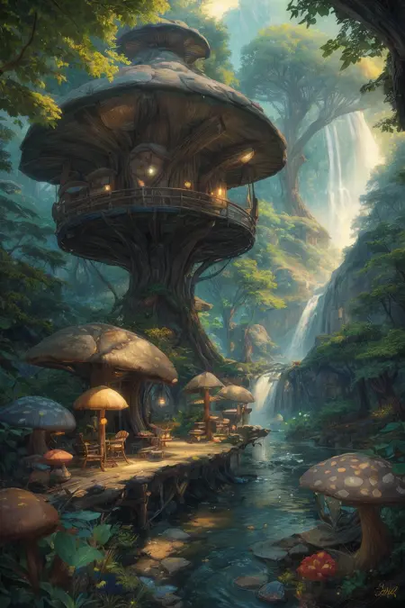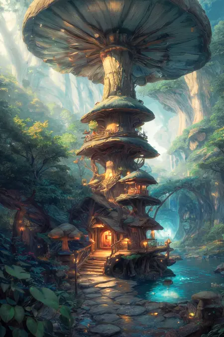 This time I bring you a scene LORA, which is very suitable for conceptual and fairy tale world designs. You can create many fun mushroom fairy tale scenes with excellent playability.