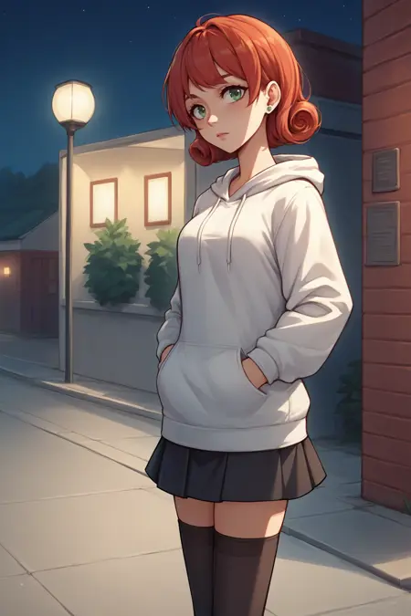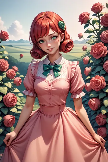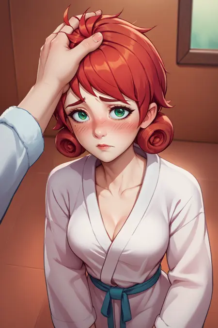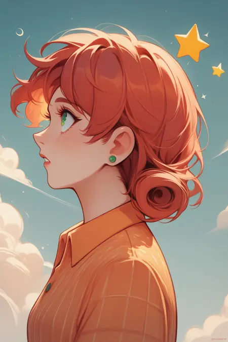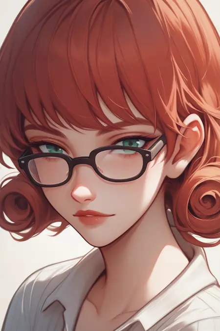 Helping Prompts: "green eyes, short hair, red hair, curly hair"