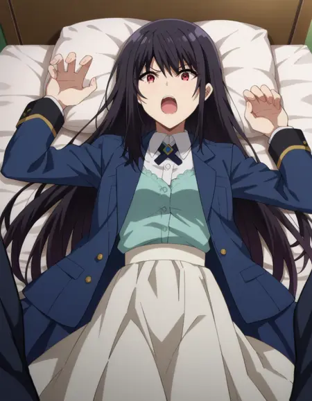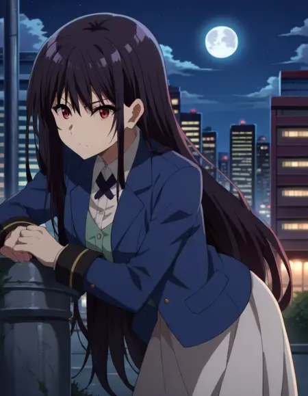 claire kagenou, long hair, black hair, red eyes,