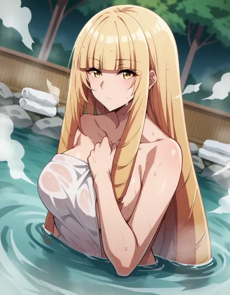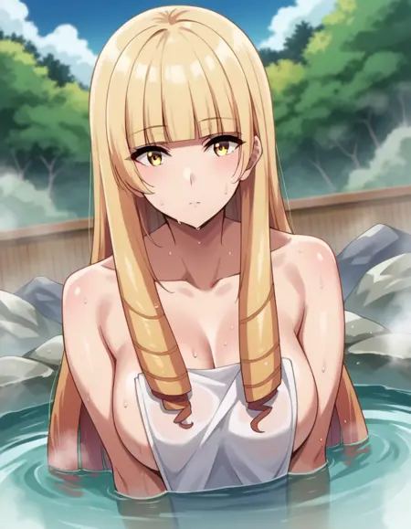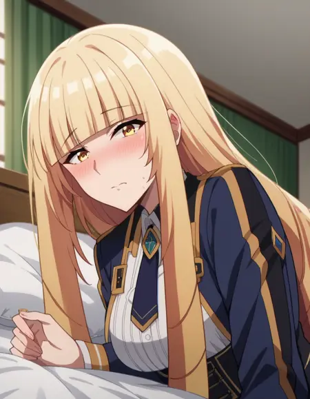oriana rose, long hair, blonde hair, yellow eyes, drill hair, bangs, blunt bangs,