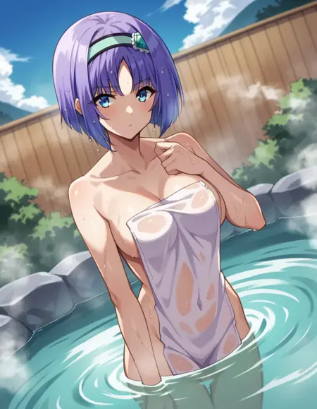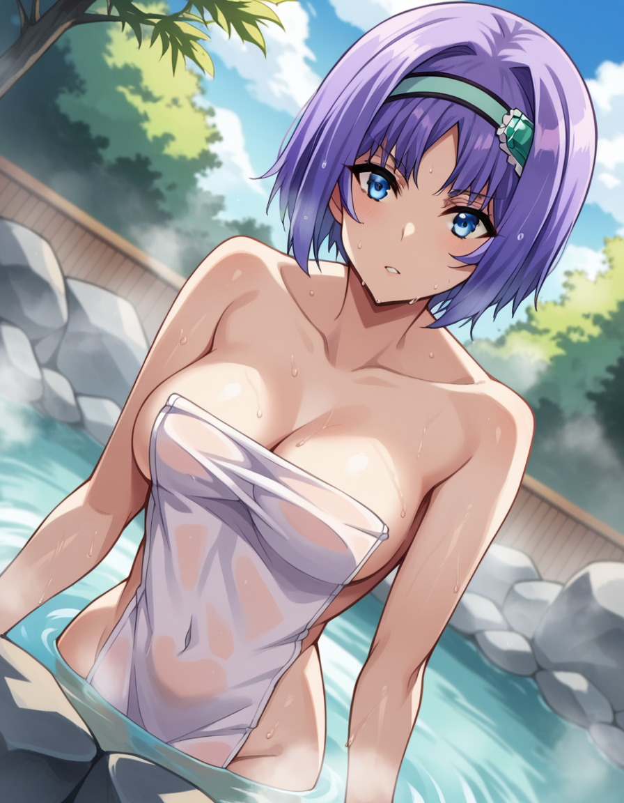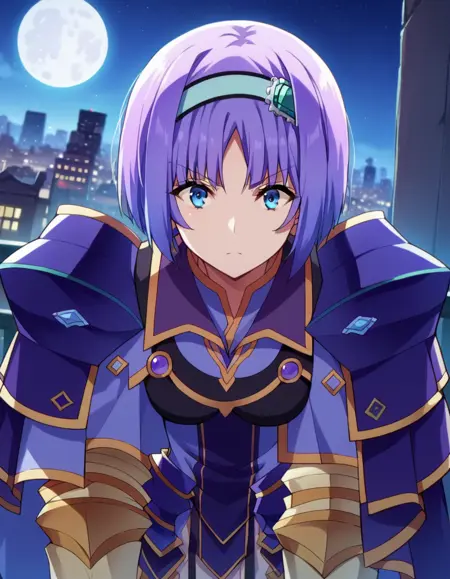 hairband, armor, shoulder armor, gauntlets, blue hairband,