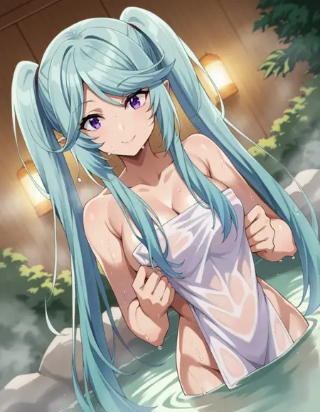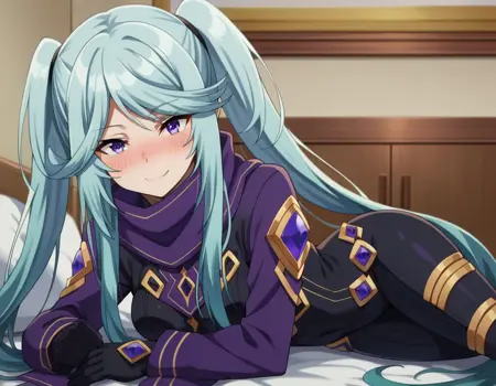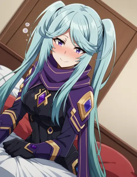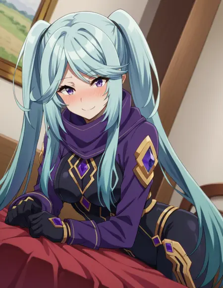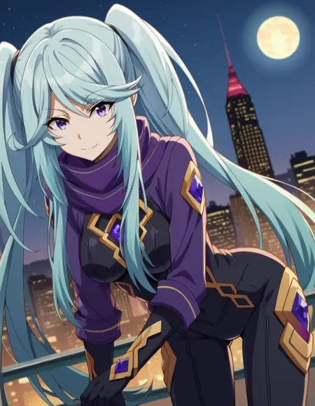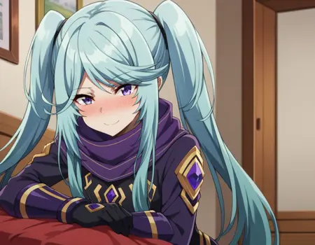 epsilon, long hair, twintails, blue hair, purple eyes, sidelocks,