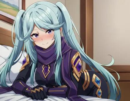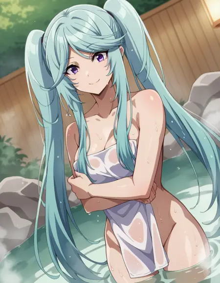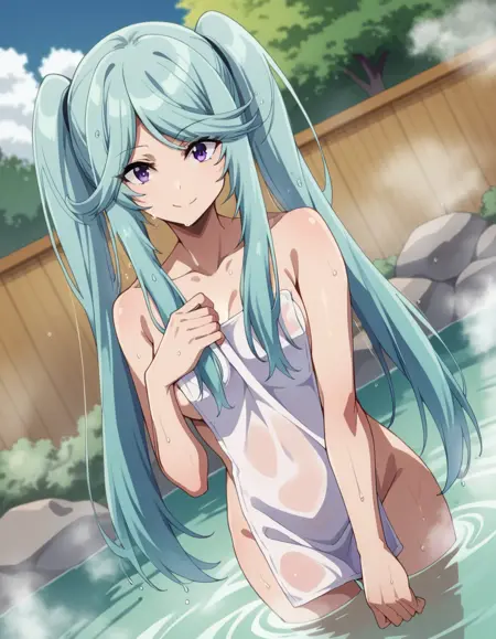 epsilon, 長い髪, ツインテール, 青い髪, 紫の目, 侧髪,