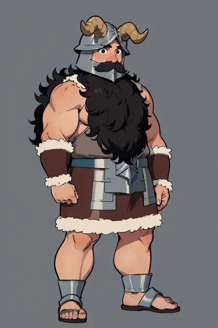 Senshi, dwarf, beard, horned helmet, armor, bracer, fur-trim, sandals
