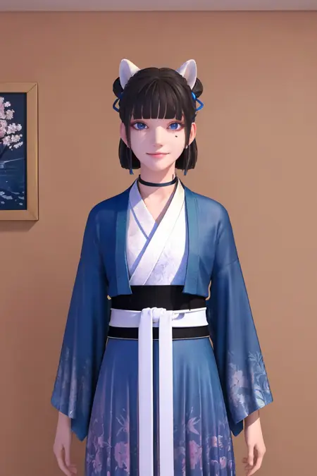 animal ears, red hanfu, printed skirt, hair ribbon, red shoes, floral print, white sash, short hair