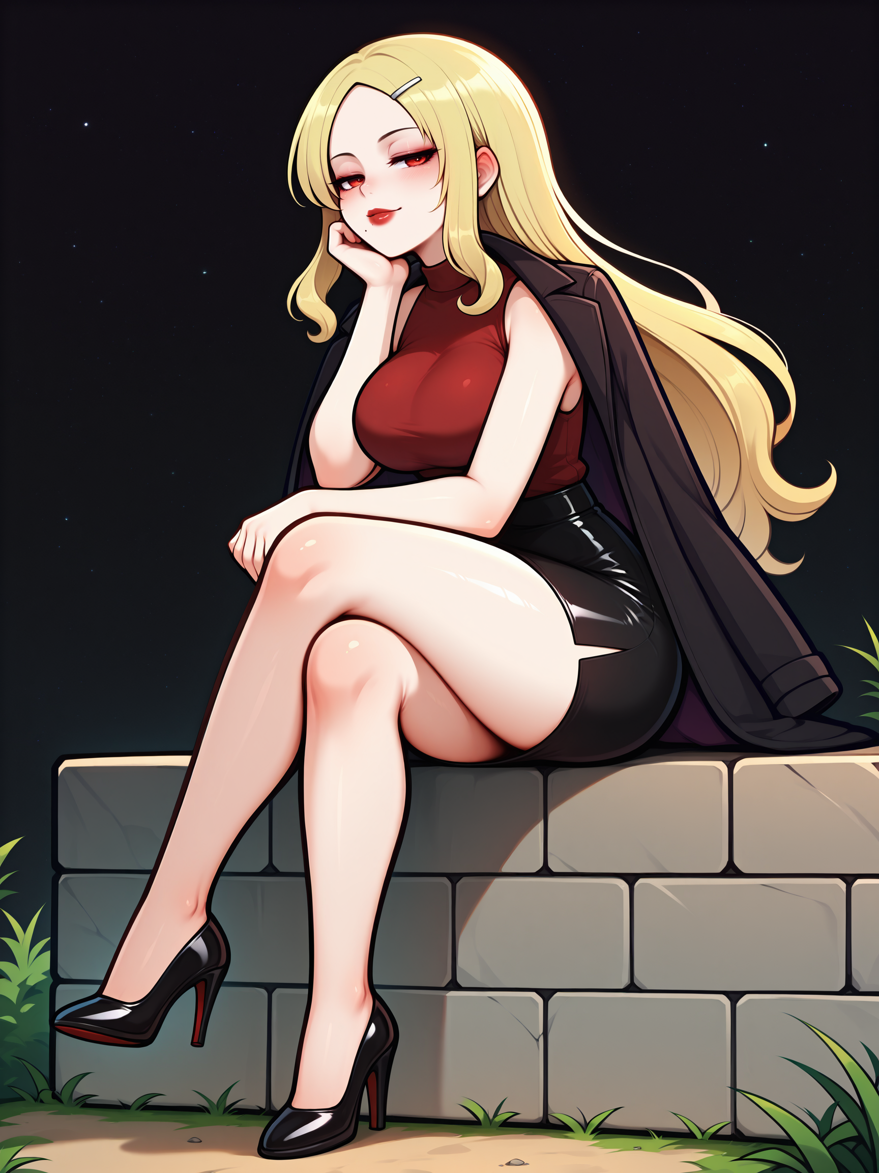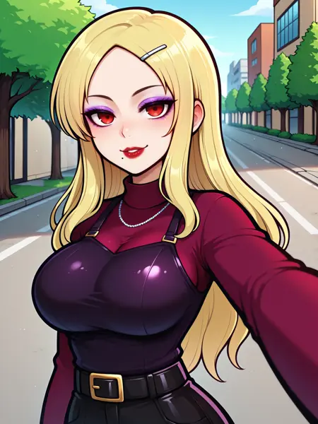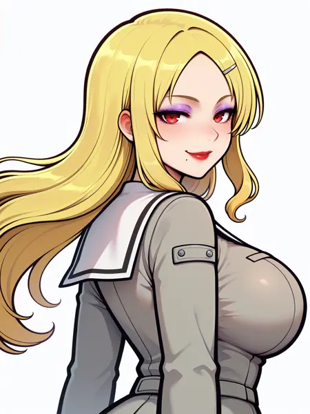 LoRAのトリガー語句は「Shiki_IL, ブロンドヘア, 長髪, ヘアクリップ, 赤い目, 口の下のほくろ, 大きな胸」です。