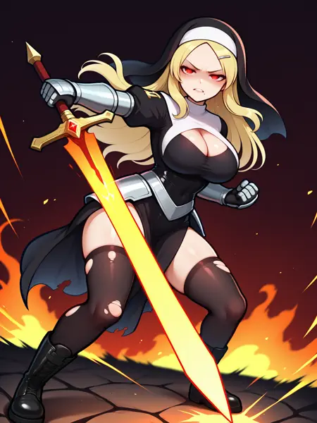 LoRAのトリガー語句は「Shiki_XL, ブロンド, 長髪, 赤い目, 口の下のほくろ, ヘアクリップ, 大きな胸」です。もちろん「大きな胸」は削除しても構いません。