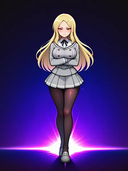 学校服のトリガー語句は「shiki_school_outfit, 学校制服, 黒いパンティーホース, グレーのジャケット, グレーのスカート, 首リボン, グレーのベルト」です。