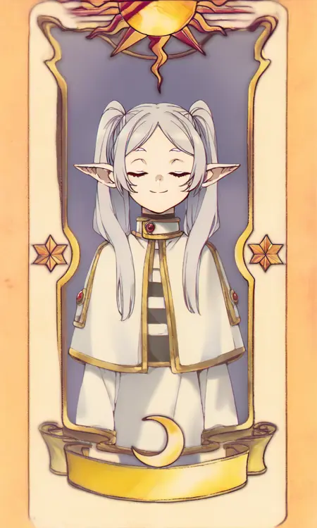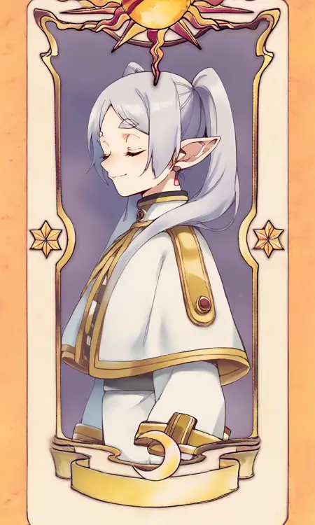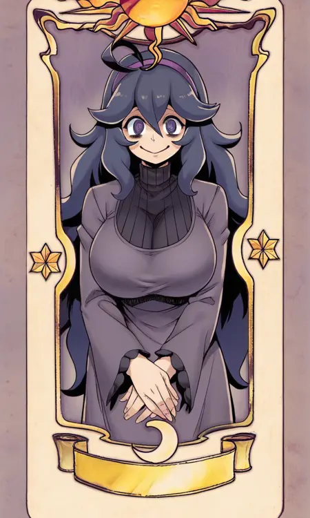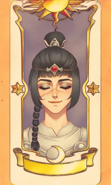 Prompts : closed eyes, card, solo, tarot, smile