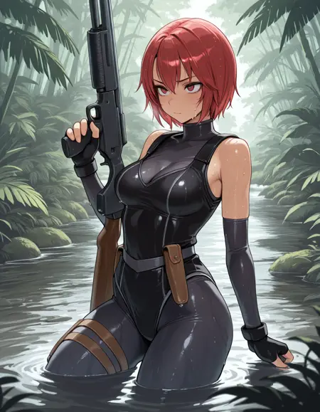 Pony version trained with Pony Diffusion V6 XL and images generated with Anime Confetti Comrade Mix.