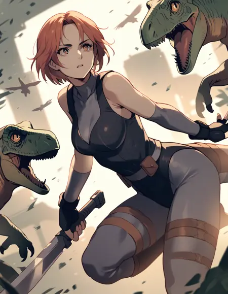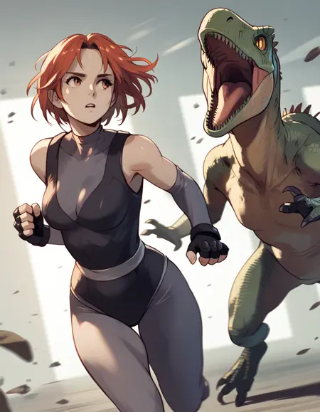 trigger: regina, bodysuit under clothes, fingerless gloves, leotard, detached sleeves