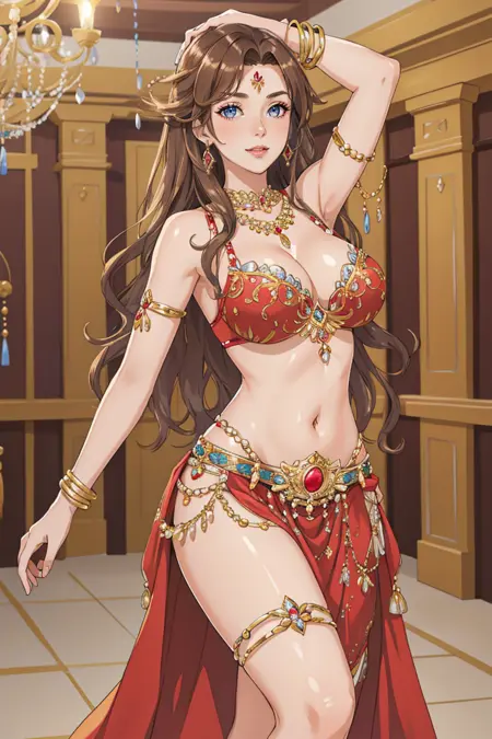 HUD_2_BllyDncr、宝石、オレンジ色のブラ、腕輪、足首輪、長いシフォンスカート、ベルト、ジュエリー
