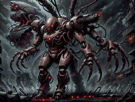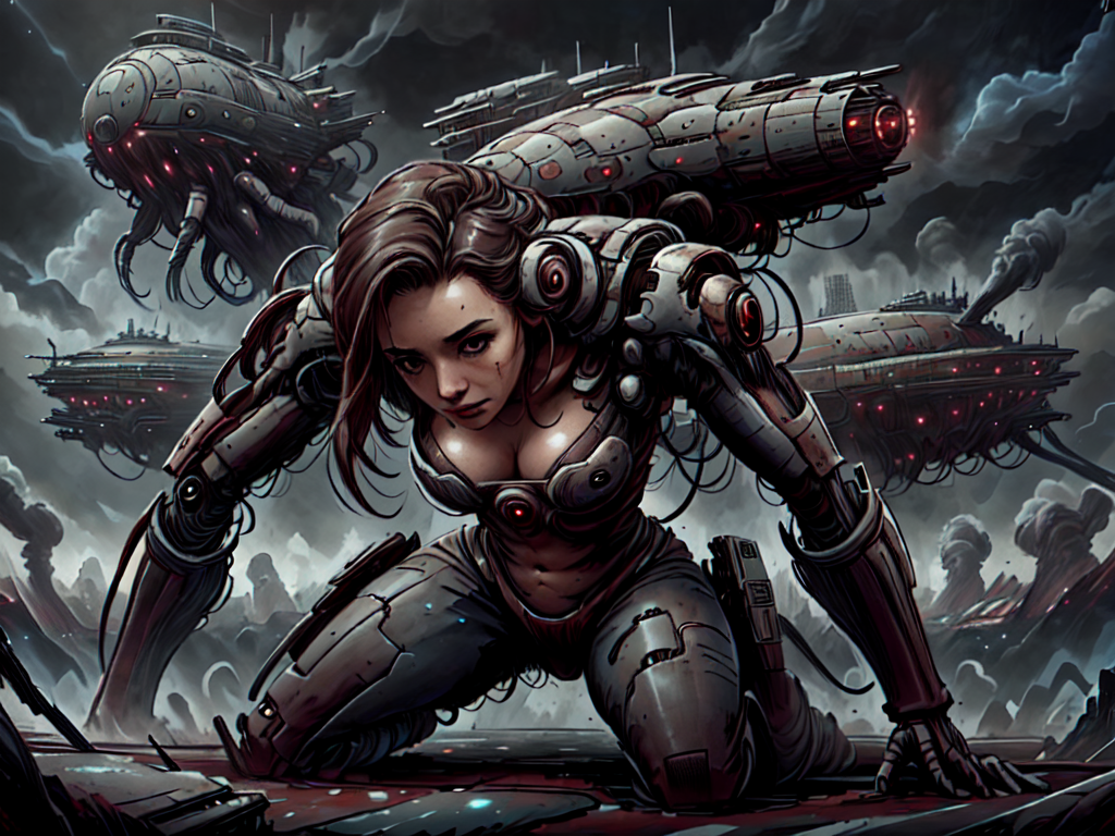 This is a LORA with the purpose of creating scifi images more towards eldritch horror. See pictures for examples of what trigger words do and have fun playing around with it.
