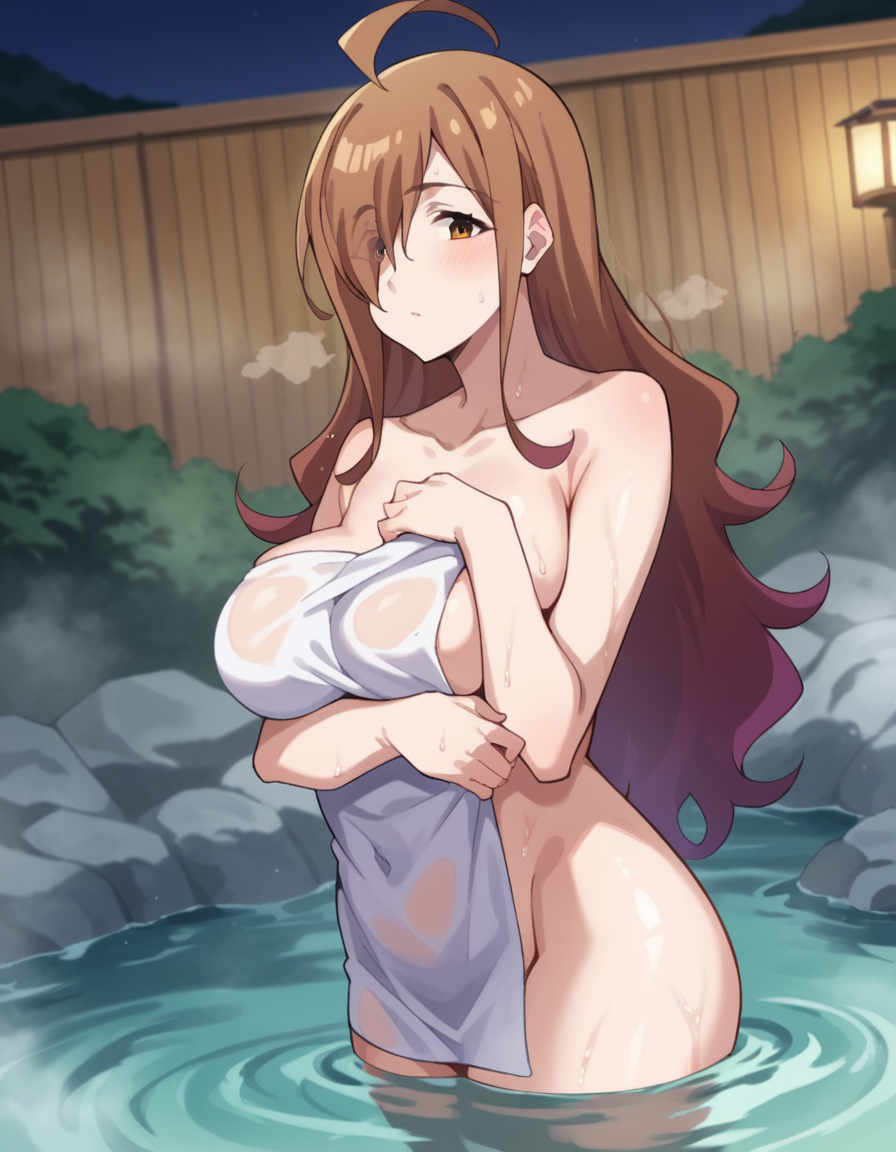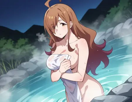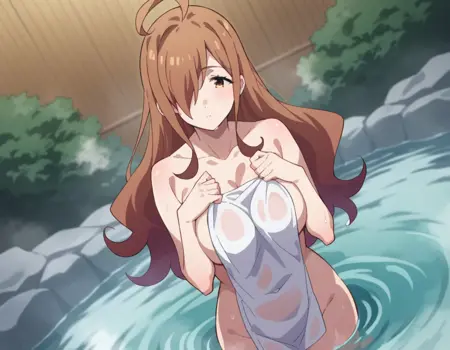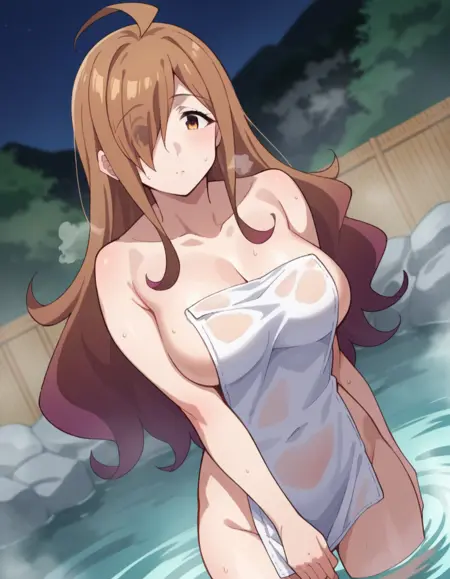 wiz, ahoge, brown eyes, light brown hair, hair over one eye, long hair,