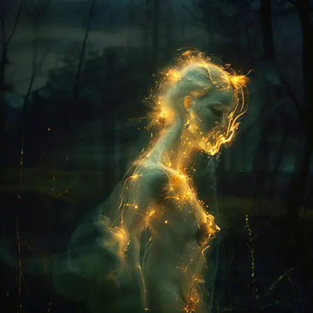 一种以模糊人形呈现的奇异光之姿态。它们移动迅速,却优雅、迅捷而无声。你会感受到一种强烈的吸引力,想要靠近这种形态,并追随其奇特的动作。当它们静止时,几乎如同活物;但当它们越动越快时,其形态便愈发抽象。