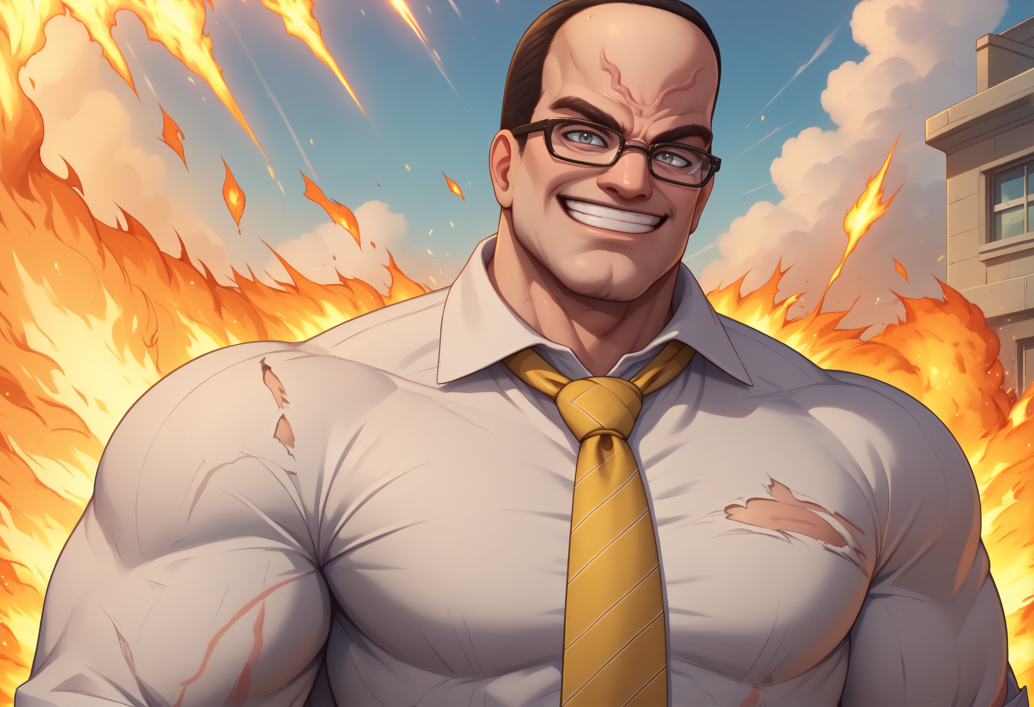Trigger: "SenArmStrong, grey eyes, black hair, buzz cut, glasses" needed for accuracy, add "manly, muscular male" for Big Armstrong.