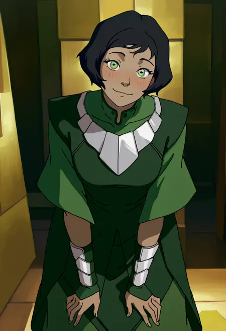 苏音·贝丰 - aaSuyinBeiFong,短发,灰发,绿色连衣裙,颈部护甲,口红,红唇,