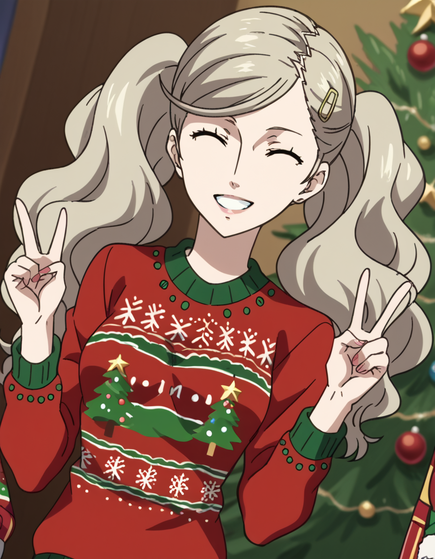 anne takamaki, blonde hair, blue eyes, hair ornament, hairclip, long hair, swept bangs, twintails, wavy hair,