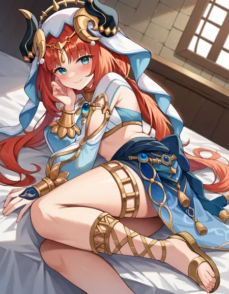 nilou, 빨간 머리, 듀얼 테일, 파란 눈, 긴 머리,