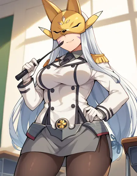 sakuyamon、動物の耳、キツネ、キツネの耳、長い髪、白い髪、顔のマーク、キツネの仮面、仮面、目を覆った、