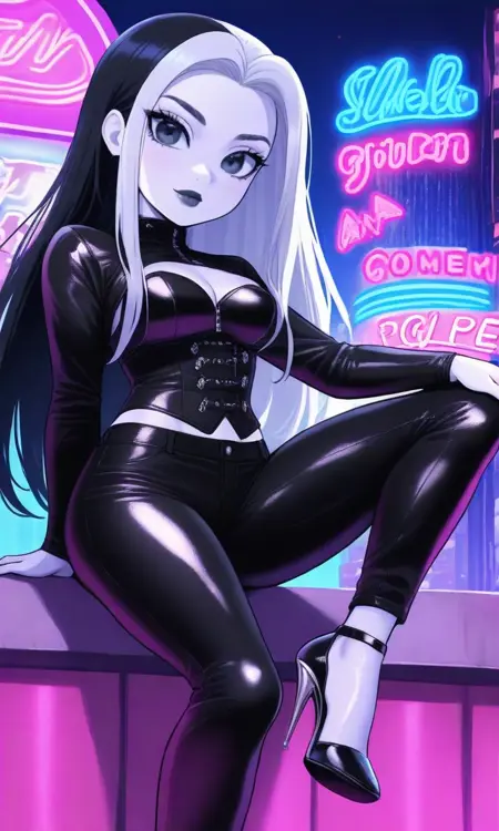 | 학습된 단어 | Heather Grayson, white hair, black hair, two-tone hair, split hair, colored skin, white skin, beautiful eyelashes, shiny eyes복사됨! Heather Grayson, white hair, black hair, two-tone hair, split hair, colored skin, white skin, beautiful eyelashes, shiny eyes, snakeskin leather dress with black zippers and a white leather jacket with graphic prints on top, silver bamboo earrings that say "Shadow", a spike chain choker that say "SH" for accessories, white heel boots with a snake heel복사됨! Heather Grayson, white hair, black hair, two-tone hair, colored skin, white skin, beautiful eyelashes, shiny eyes, wearing snakeskin long sleeved top, black leather corset on top, snakeskin printed pants and grey stiletto heels복사됨! |