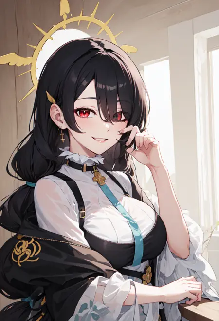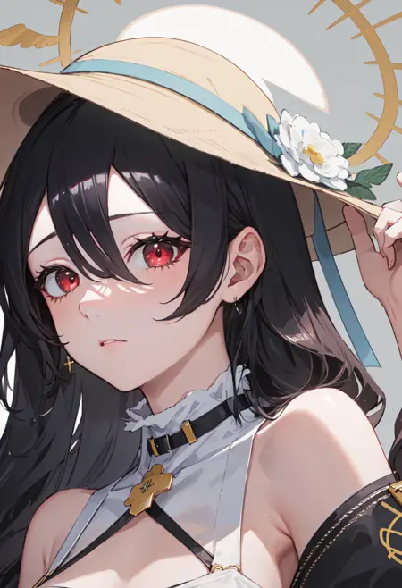 - プリューンされたキャラクタータグは以下の通りです:長髪、黒髪、胸、ハロー、片目に髪がかかる、大胸、赤い目、イヤリング、クロスイヤリング、非常に長い髪、帽子、サンハット。これらのタグは、キャラクターの核心的特徴(例:髪の色)が安定しない場合にプロンプトに追加できます。