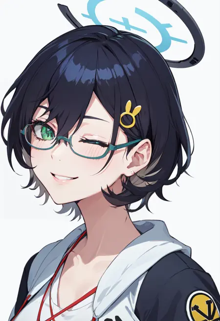 触发词为 chihiro_bluearchive,剪枝标签为 short_hair, glasses, halo, black_hair, hair_ornament, breasts, semi-rimless_eyewear, large_breasts, green_eyes, rabbit_hair_ornament, hair_between_eyes, blue_hair, blue-framed_eyewear当某些特征(如发色)有时不够稳定时,您可以将这些标签添加到提示词中