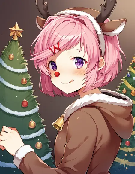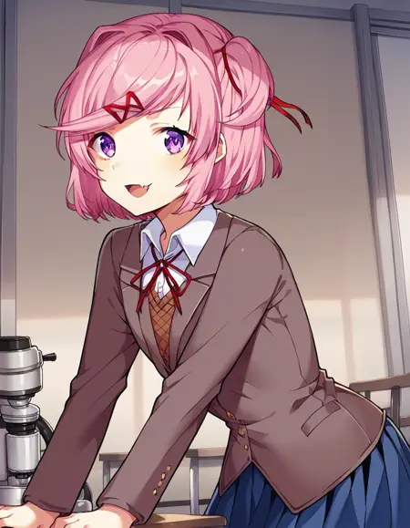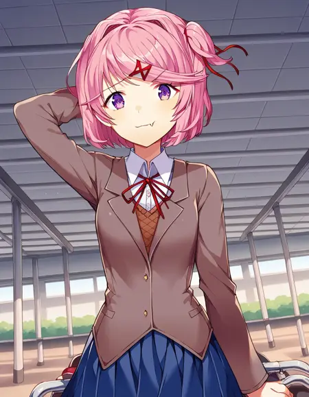 ddlcnatsuki, 牙齿, 发饰, 粉色头发, 紫色眼睛, 短发, 短侧发, 刘海, x 发饰,