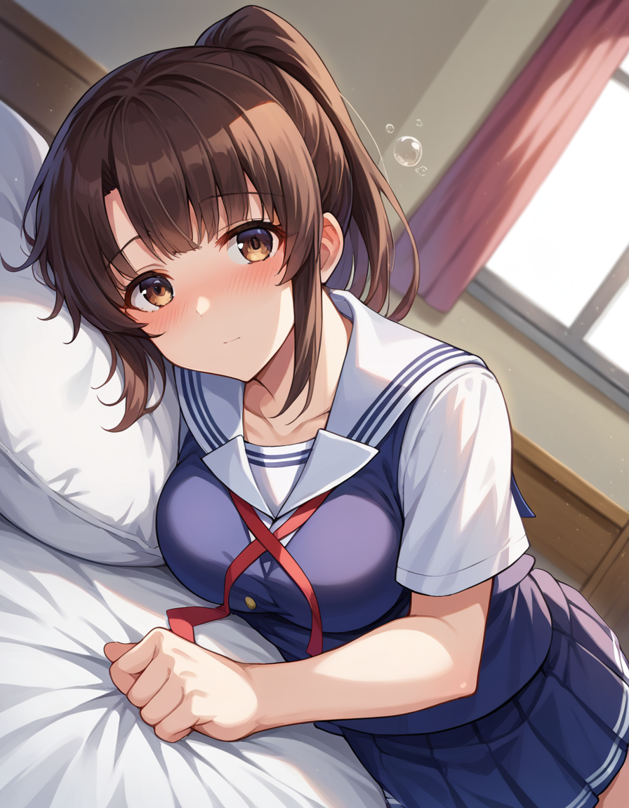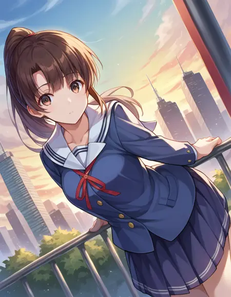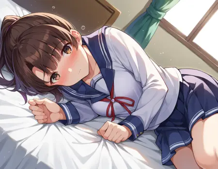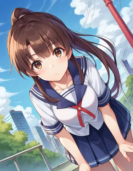 long hair, ponytail, miniskirt, school uniform, skirt, sailor uniform, serafuku,