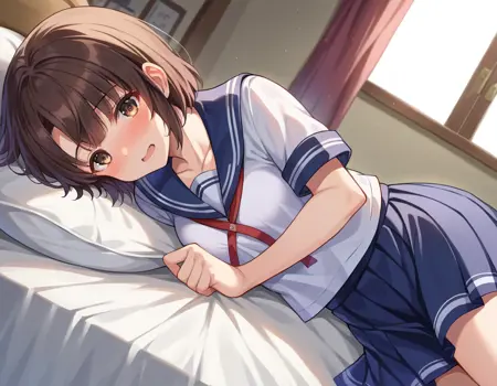 short hair, miniskirt, school uniform, skirt, sailor uniform, serafuku,