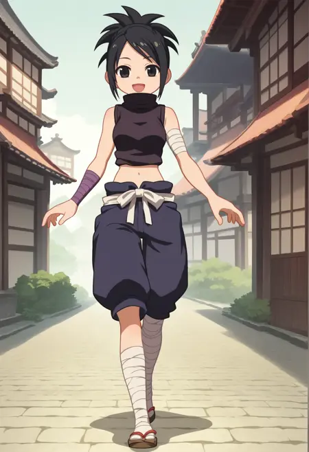 General: medium hair, black hair, black eyes, ponytail, ninja, japanese clothes,