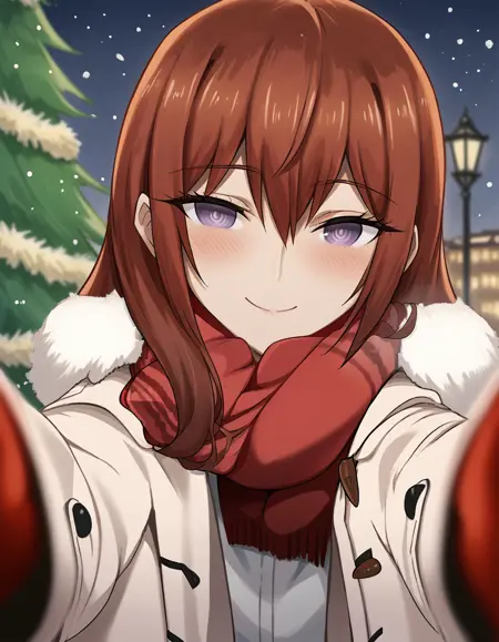 kurisu makise,头发遮住眼睛,头发垂在肩上,长发,紫色眼睛,红发,直发,