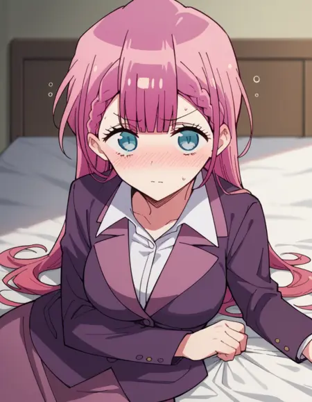 mafuyu kirisu, 青い目, 編み髪, 長い髪, 二つ編み, ピンクの髪,