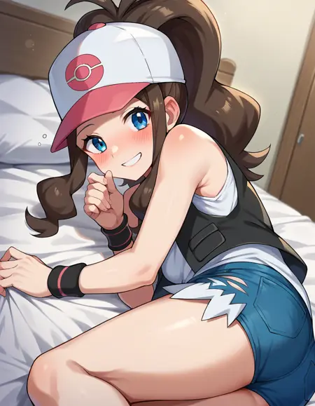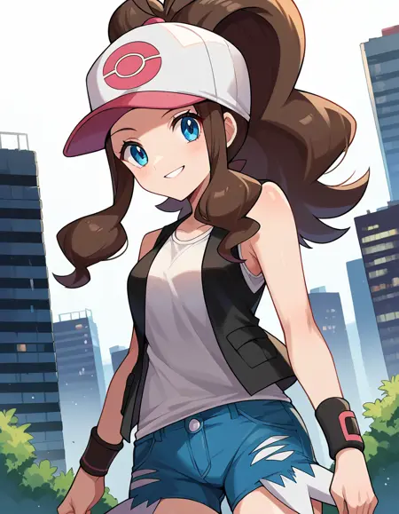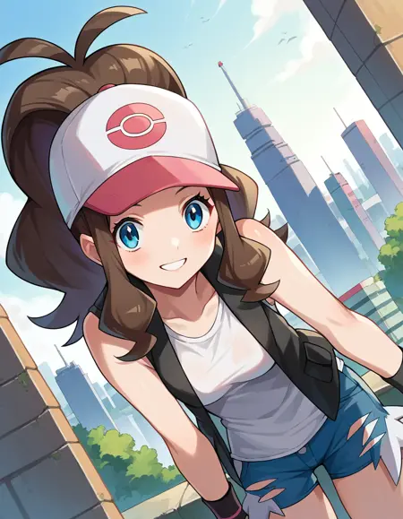pokemonhilda, 青い目, 茶色の髪, 長い髪, ポニーテール,