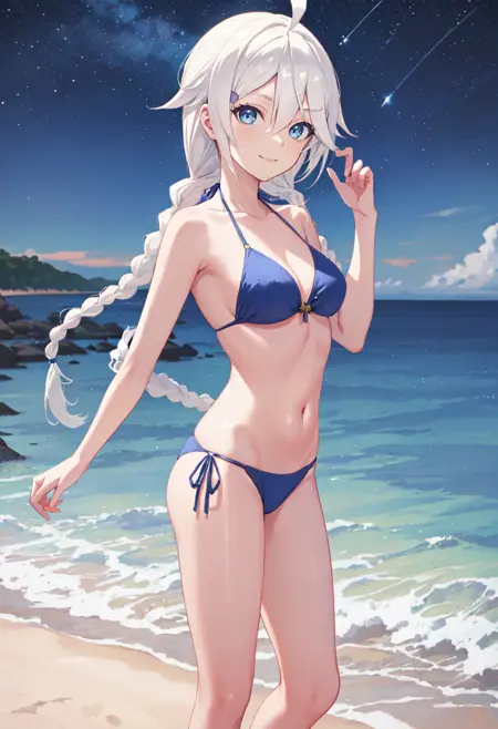 - 필터링된 캐릭터 태그는 흰색 머리카락, 하늘, 긴 머리카락, 두 줄 땋은 머리, 땋은 머리, 파란 눈, 트윈테일, 아호게, 파란 하늘, 모자, 쓸어올린 앞머리, 경찰 모자, 머리 장식, 눈 사이의 머리카락, 가슴, 머리핀입니다. 캐릭터의 핵심 특징(예: 머리색)이 안정적이지 않을 때 이 태그를 프롬프트에 추가할 수 있습니다.