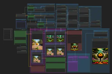 This workflow is designed for advanced video processing, incorporating various techniques such as style transfer, motion analysis, depth estimation, and frame interpolation to create a final video that combines elements from different sources with enhanced visual quality.